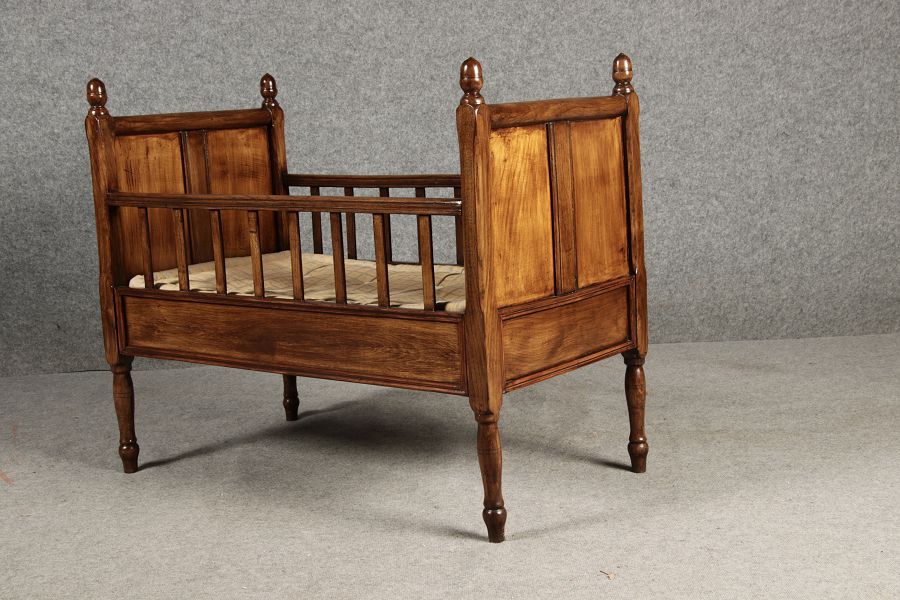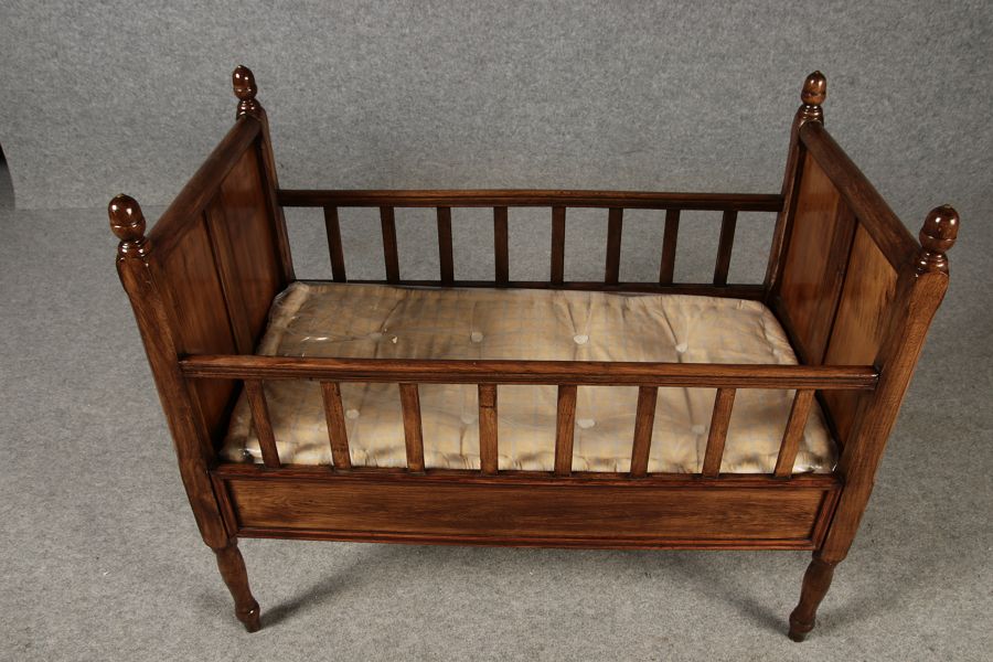 | Antikes Biedermeier Kinderbett Puppenbett 19 Jh. Nussbaum |