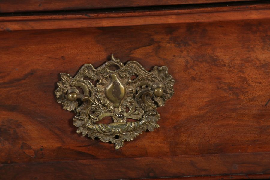 Masse/dimensions: Höhe/Height ca. 248 cm, Breite Korpus/Broad Boda ca. 194 cm, Breite Gesims/Broad cornice ca. 204 cm, Tiefe Korpus/Deep body ca. 39/48 cm, Tiefe Gesims Füße/Deep cornice feet ca. 53 cm,
