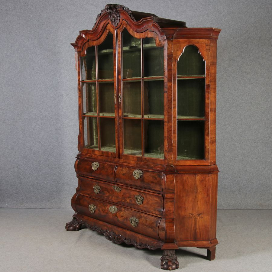| Antike 248 cm Hohe Barock Vitrine Holland 18 Jh. Nussbaum | ||