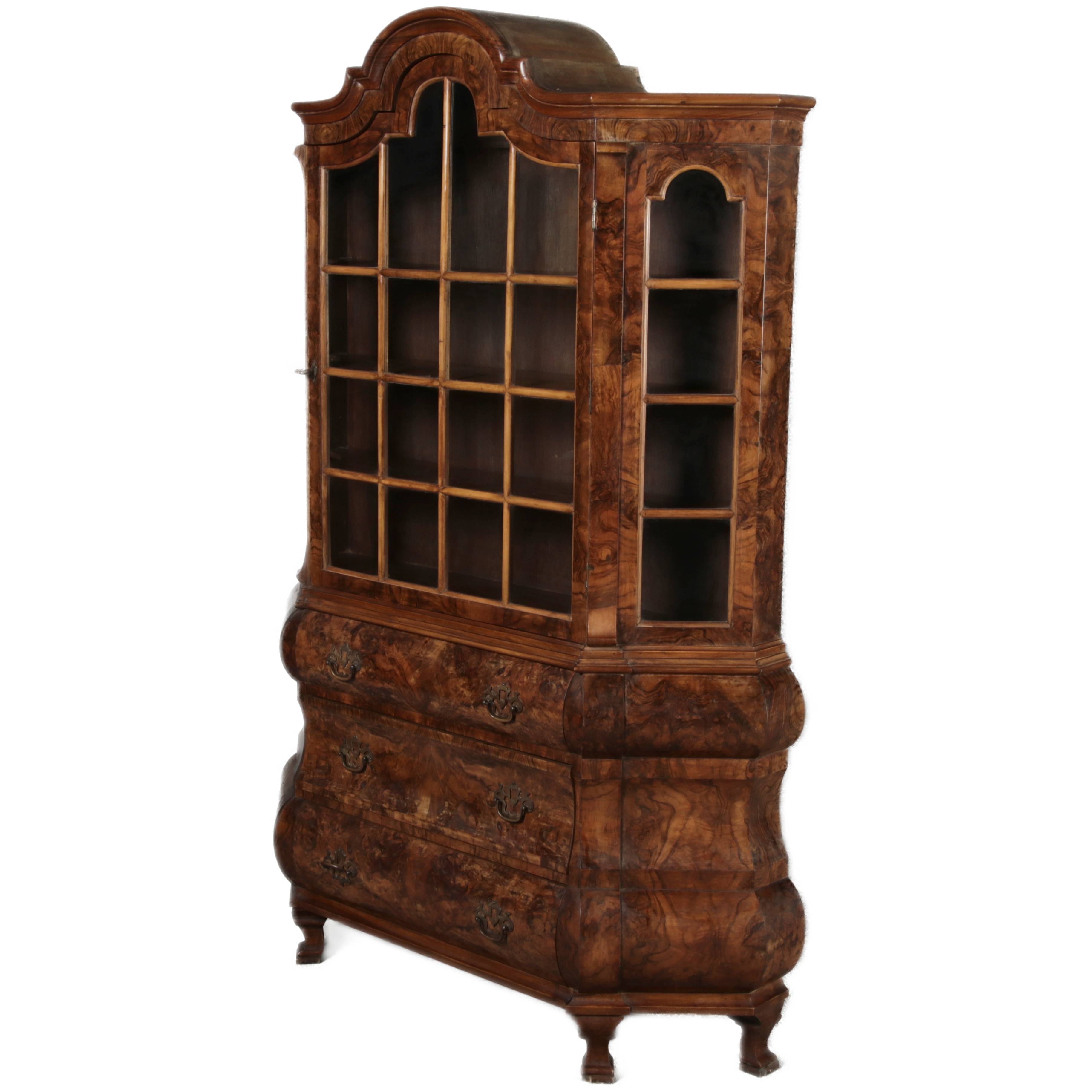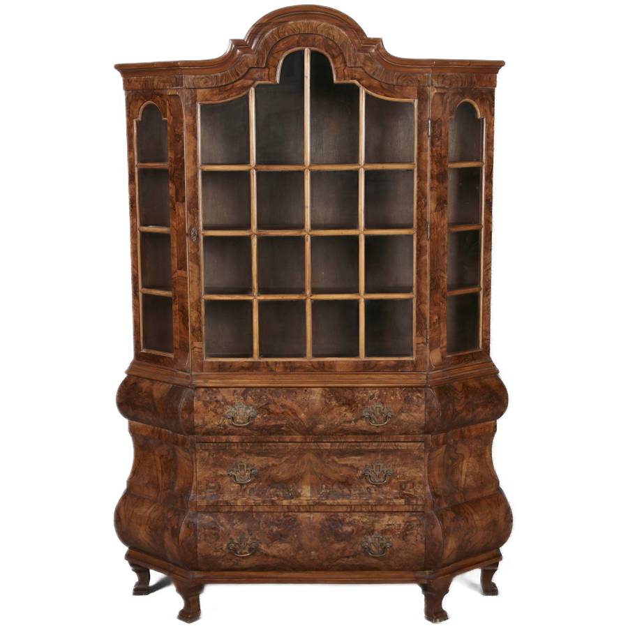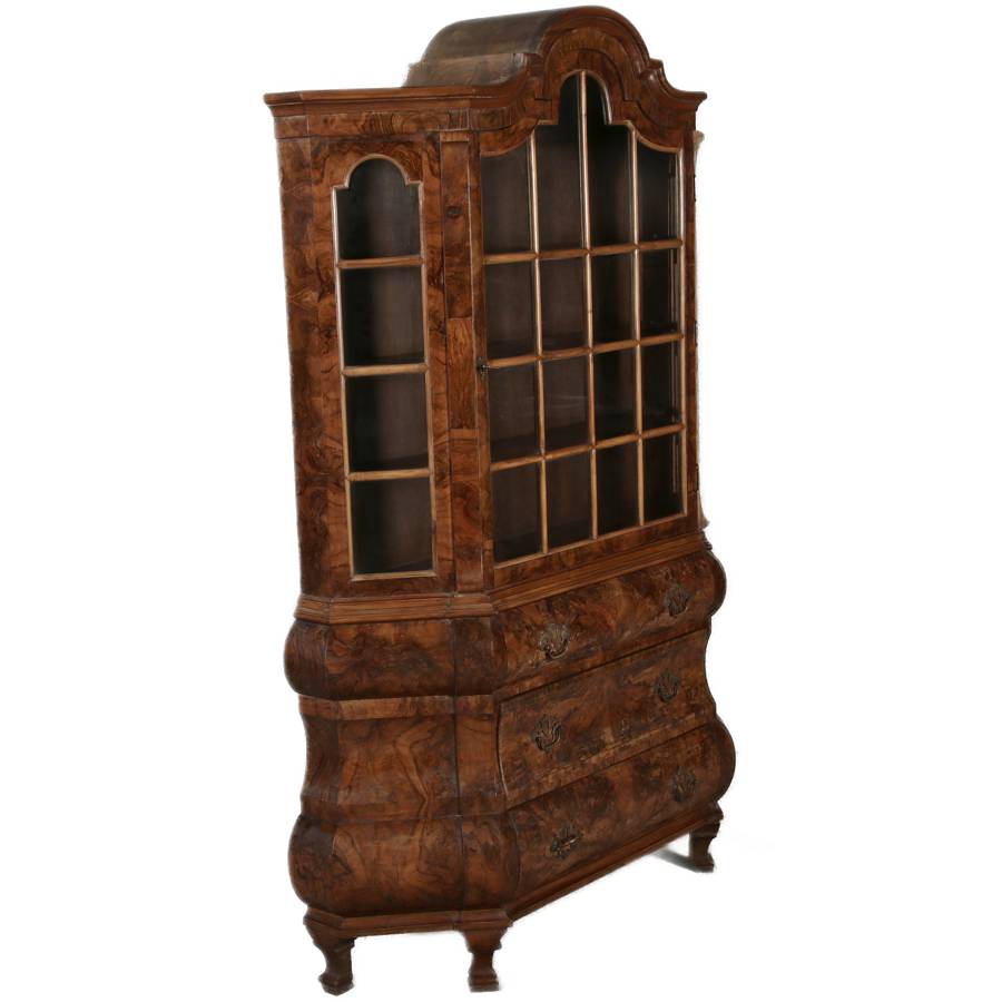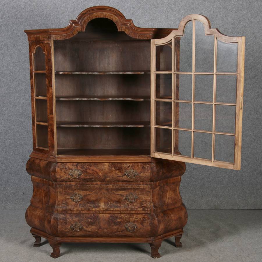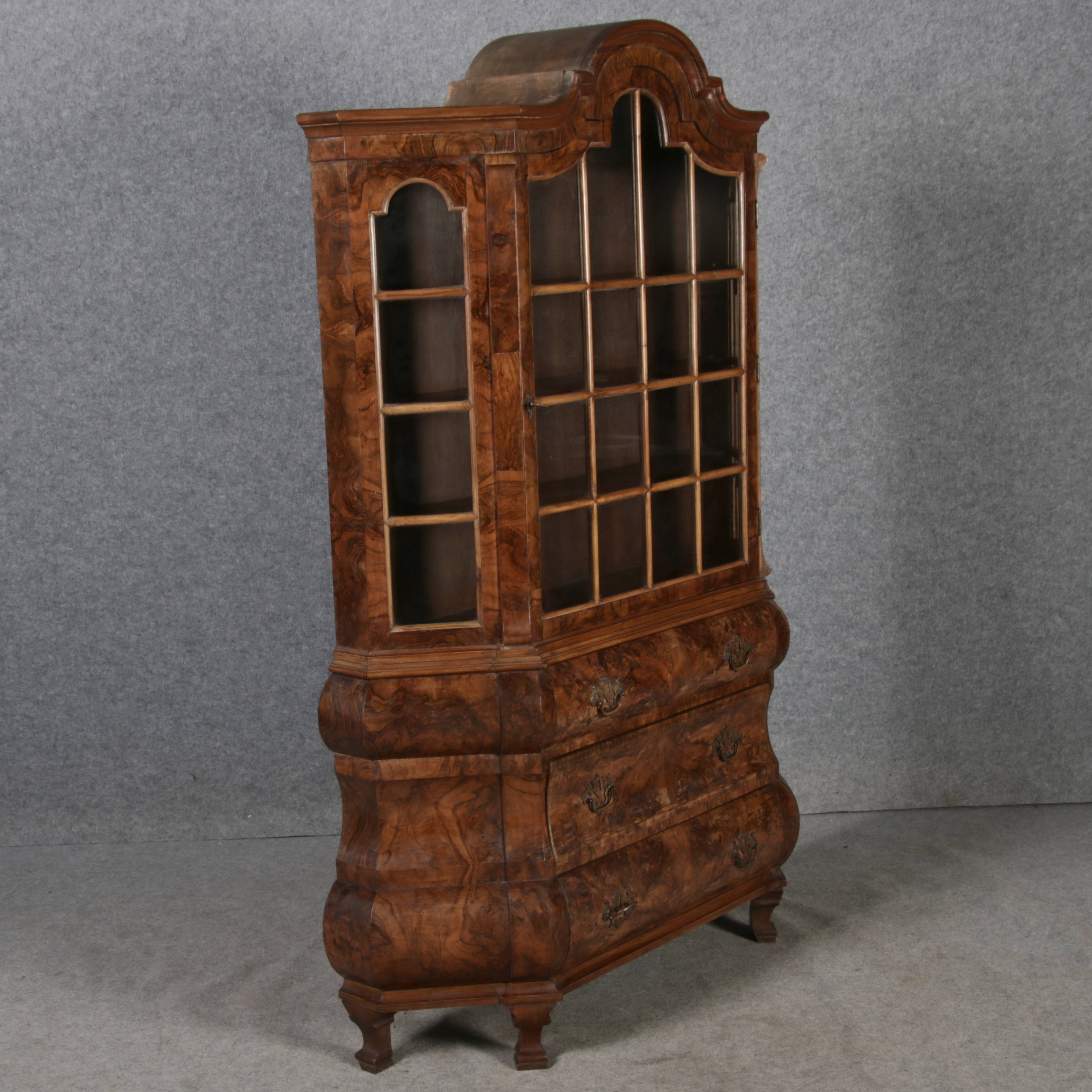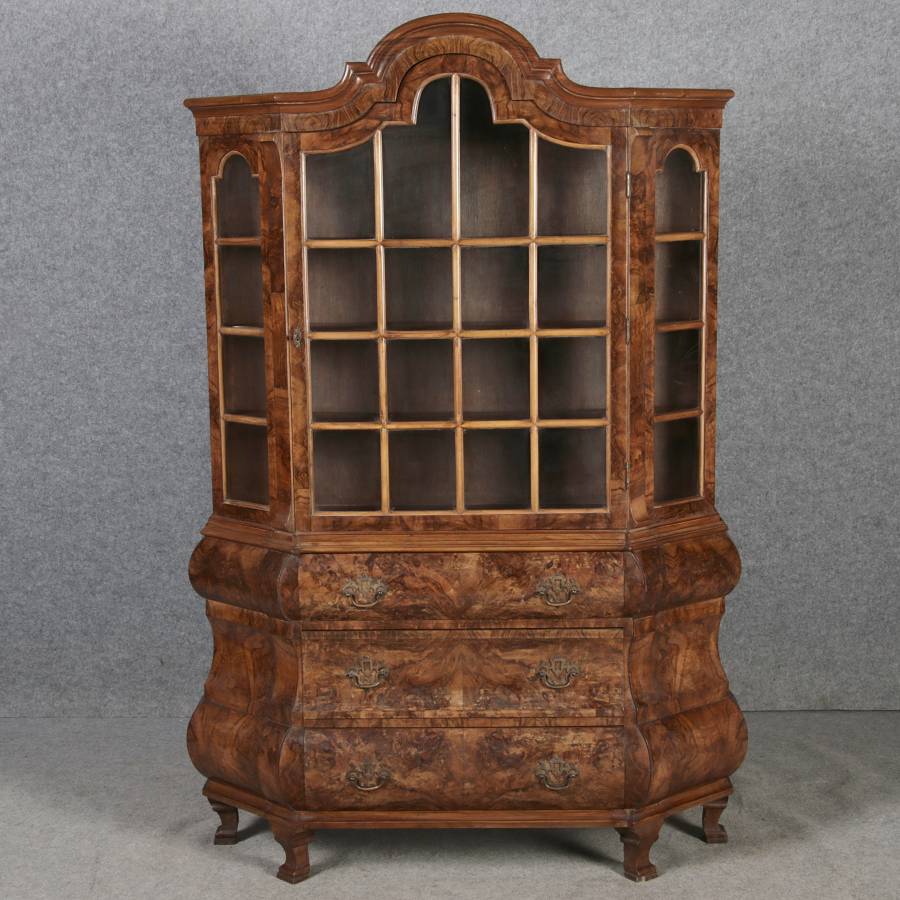| Antike kleine Holländische Barockvitrine um 1900 Nussbaum | ||