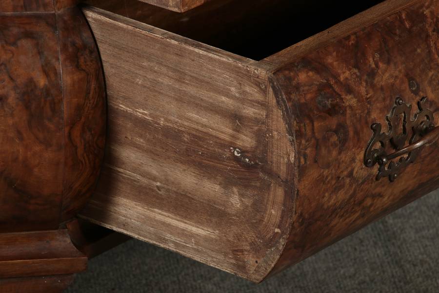 Nussbaum auf Eichenholz, Messinggriffe